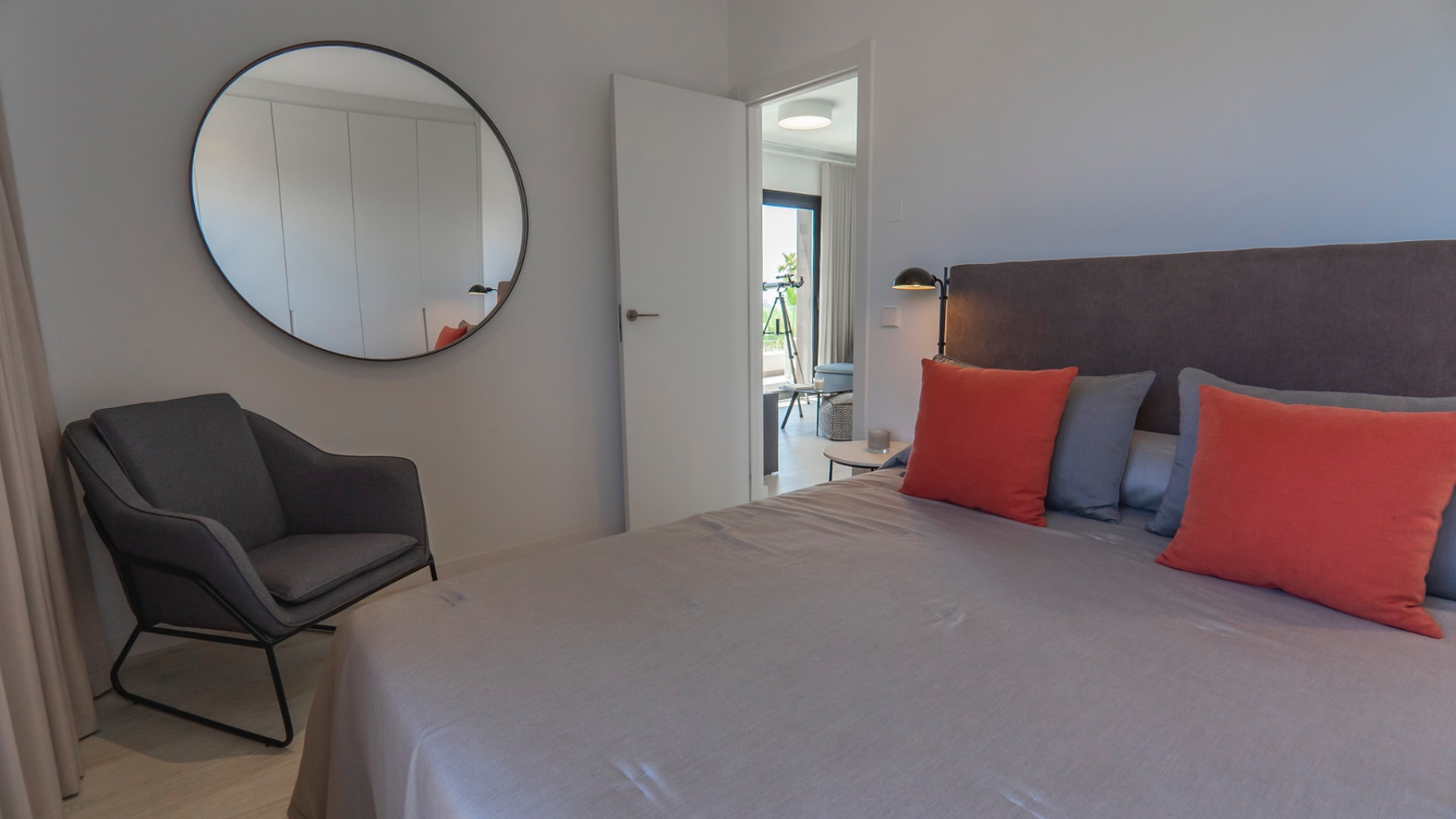 En la primera planta hay dos dormitorios dobles más, ambos con acceso a la terraza envolvente con impresionantes vistas a los lagos salados y al mar. La suite principal incluye vestidor y baño privado con ducha. También hay un baño familiar en esta planta.