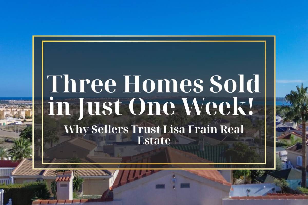 Chez Lisa Frain Real Estate , nous avons vendu trois propriétés en seulement sept jours — toutes à des propriétaires qui ont choisi de nous confier la vente de leur bien en exclusivité .